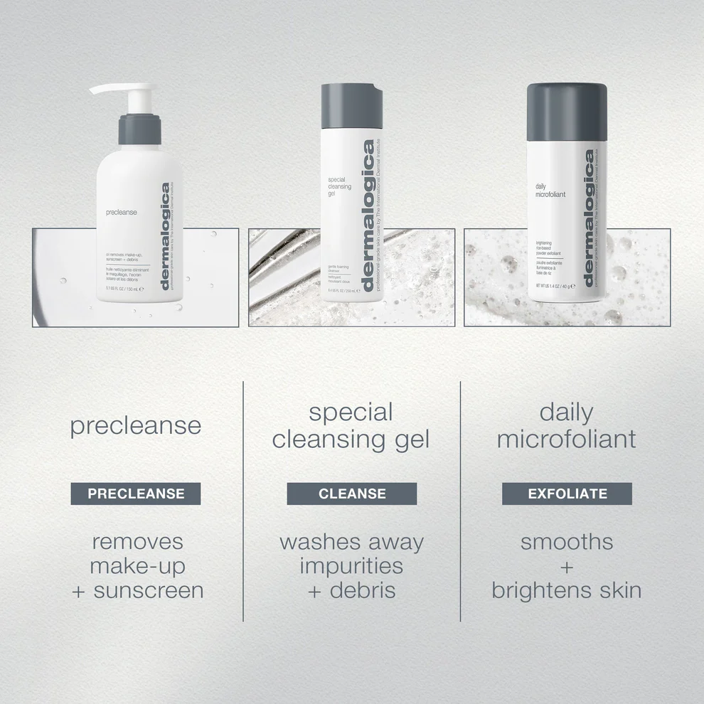 Bring home our signature kit this winter — and light up the night with your unmistakable glow. This do-it-all cleansing kit features three iconic formulas for brighter, smoother, healthier-looking skin. Remove make-up and debris with Precleanse, wash away impurities with Special Cleansing Gel, and unveil your glow with our #1 powder exfoliant, Daily Microfoliant.*